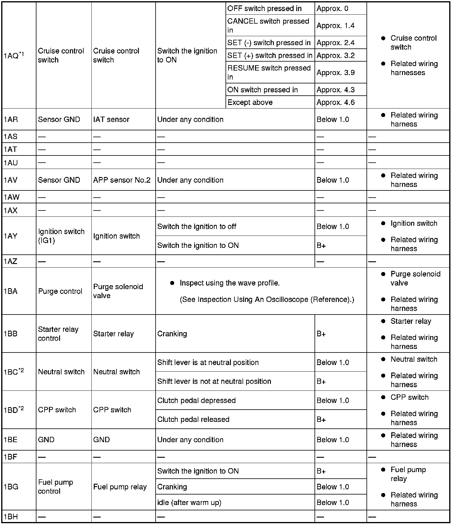 - Fuel Injection No.1: 2BB(+)-body ground(-)
