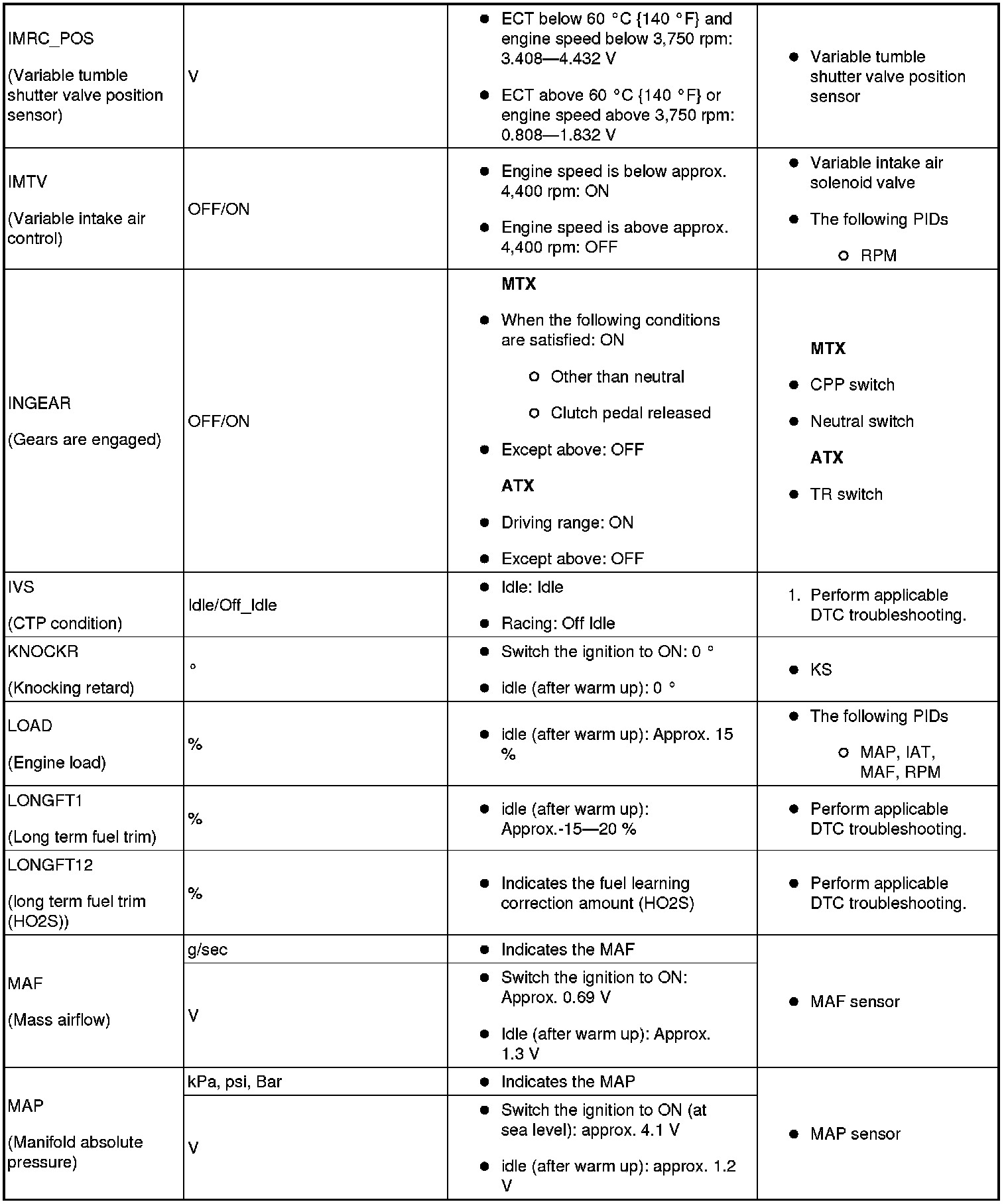 - Following PIDs are for the ATX models. If inspects for following PIDs, PID/Data Monitor Inspection