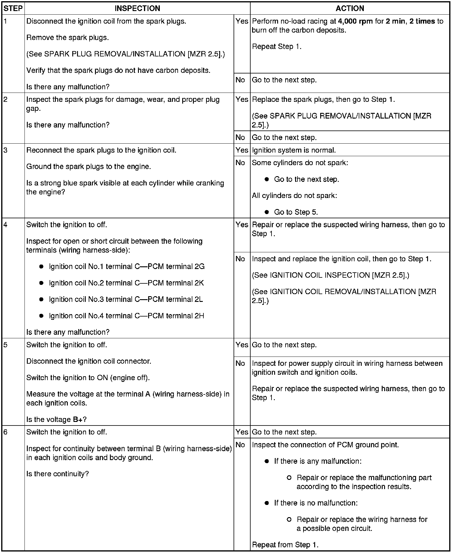 3. Inspect the ignition system in the following procedure.