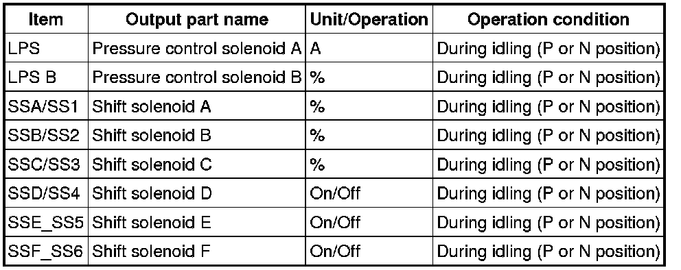 - If the operation of output parts cannot be verified after the active command mode inspection is performed, this could indicate the possibility of an open or short circuit, sticking, or operation malfunction in the output parts.