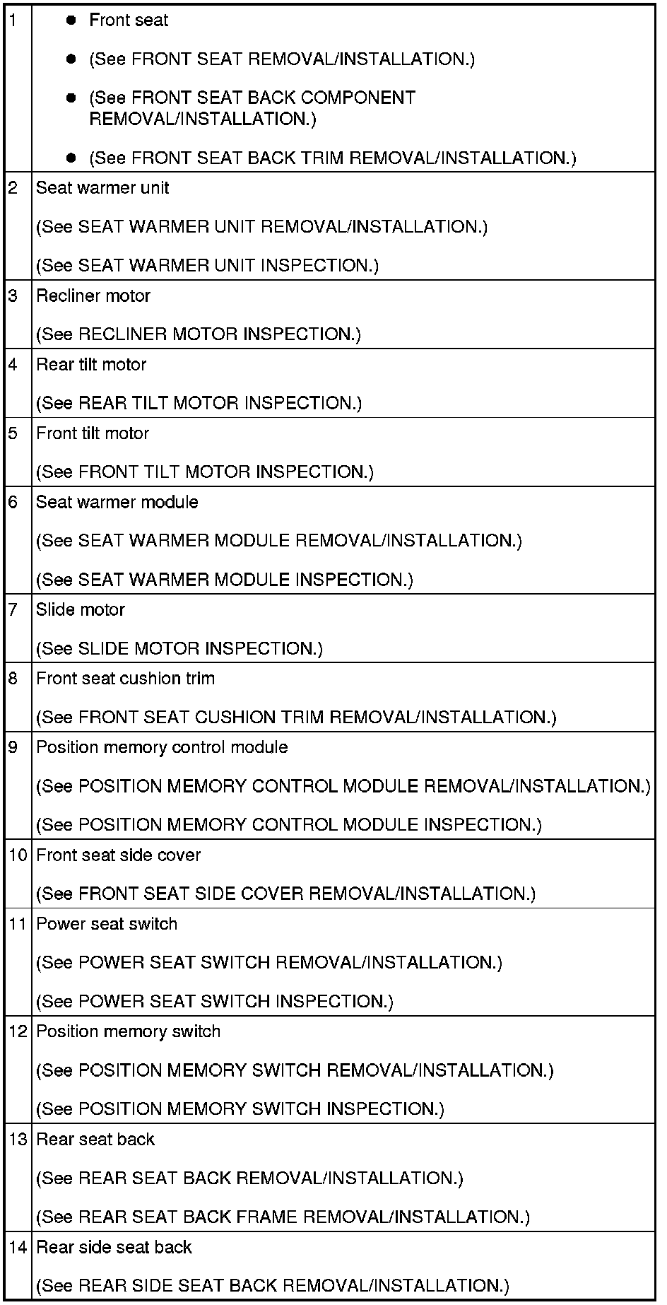 SEATS LOCATION INDEX