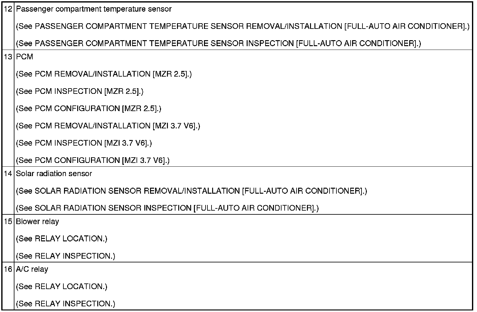 HVAC CONTROL SYSTEM LOCATION INDEX [FULL-AUTO AIR CONDITIONER]