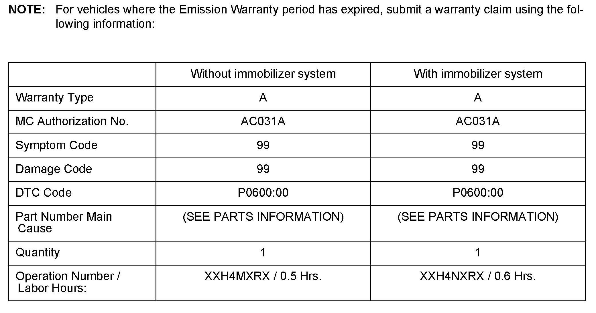 The MIL illumination may be cleared by disconnecting the negative battery cable, however, the DTC P0600:00 remains stored in memory.