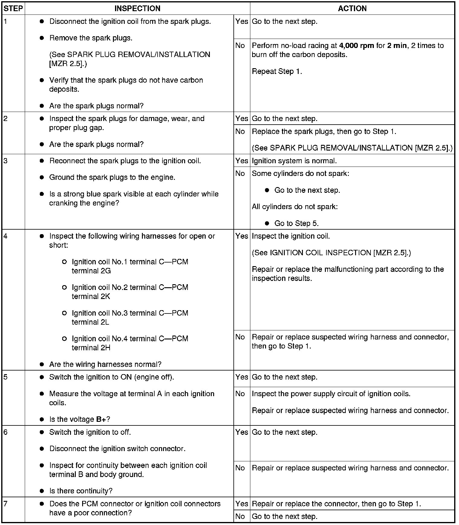 3. Inspect the ignition system in the following procedure.