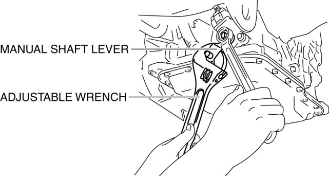 1. Set the adjustable wrench as shown to hold the manual shaft lever and tighten the manual shaft nut.