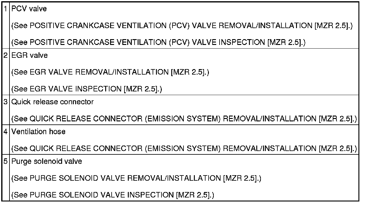 EMISSION SYSTEM LOCATION INDEX [MZR 2.5]