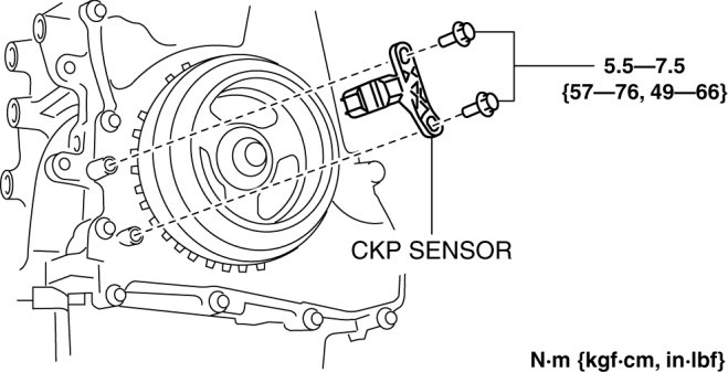 4. Install the CKP sensor fitting bolts.