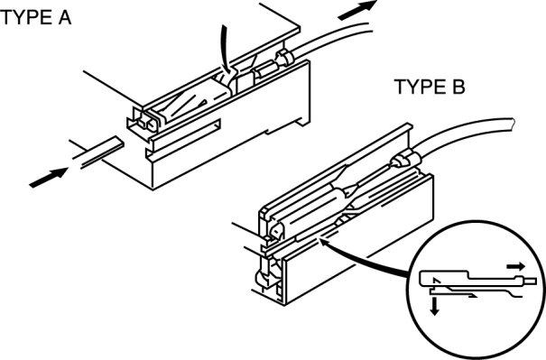 - Use the appropriate tools to remove a terminal as shown. When installing a terminal, be sure to insert it until it locks securely.