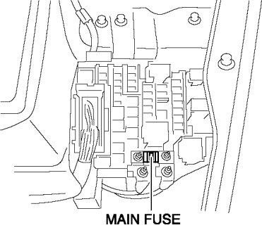 - Be sure the negative battery terminal is disconnected before replacing a main fuse.