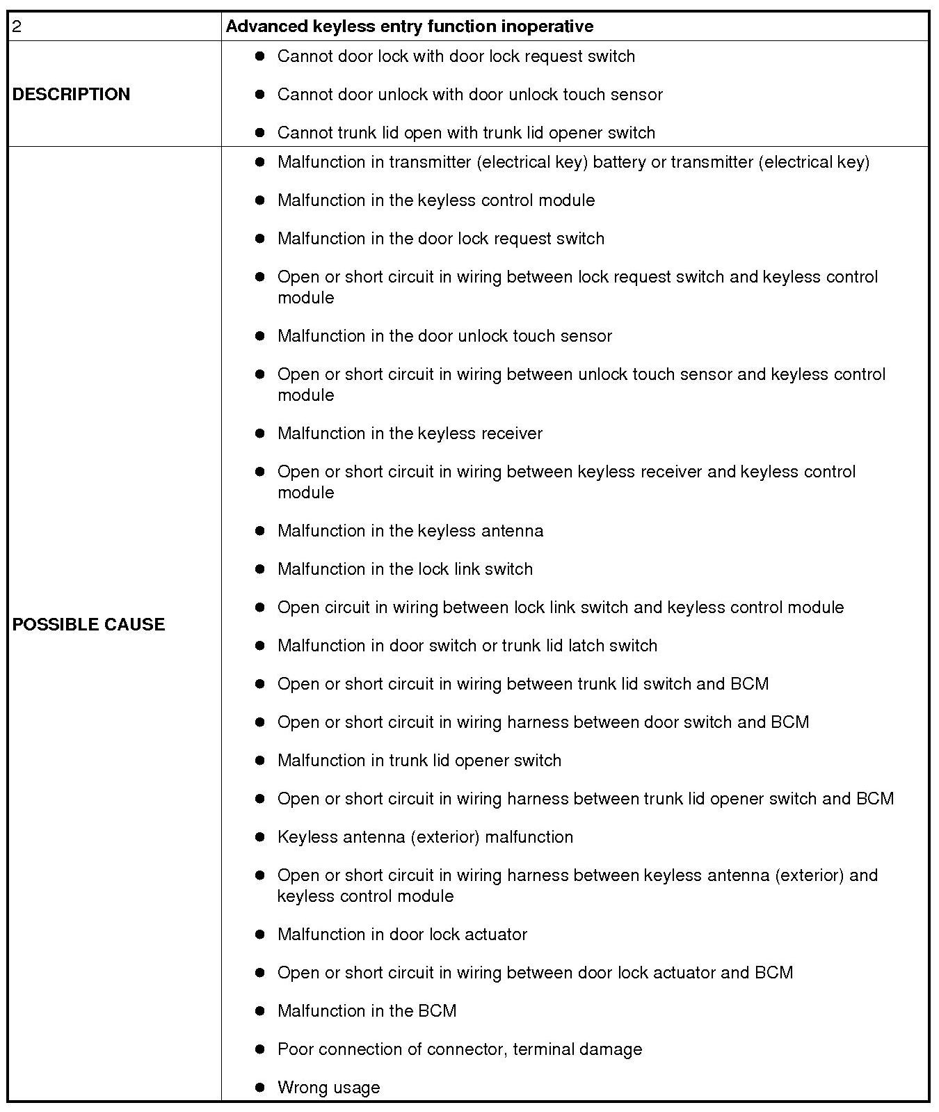 No. 2 Advanced Keyless Entry Function Inoperative