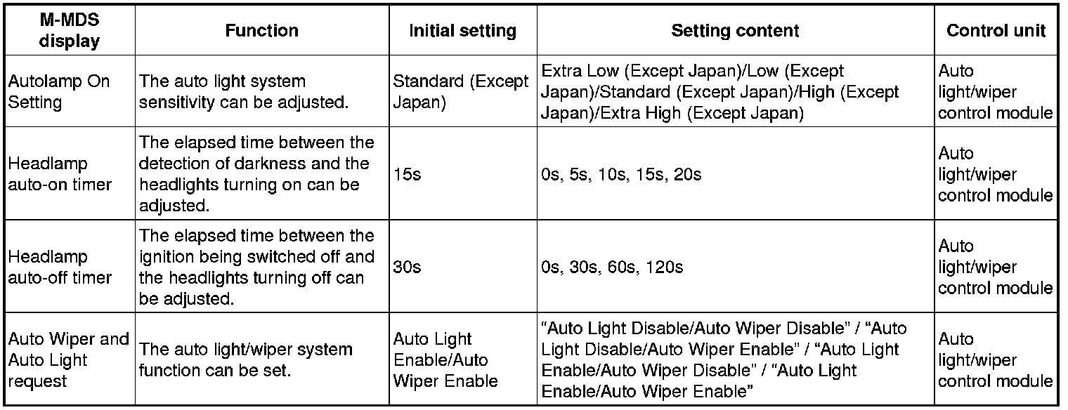 Home >> Mazda >> 2012 >> 6 V6-3.7L >> Repair and Diagnosis >> Lighting and Horns >> Testing and Inspection >> Programming and Relearning >> Lighting System Personalization Features Setting Procedure