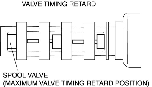 3. Verify that the spool valve in the OCV is in the maximum valve timing retard position as indicated in the figure.