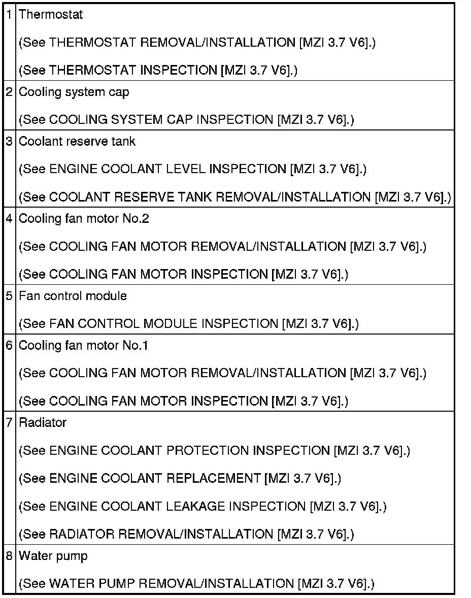 COOLING SYSTEM LOCATION INDEX [MZI 3.7 V6]