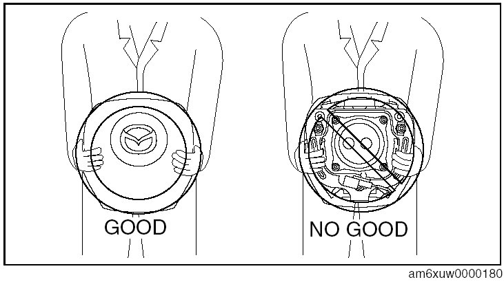- Before removing the air bag module or disconnecting the air bag module connector, always switch the ignition to off, disconnect the negative battery cable, and then wait for 1 min or more to allow the backup power supply of the SAS control module to deplete its stored power.