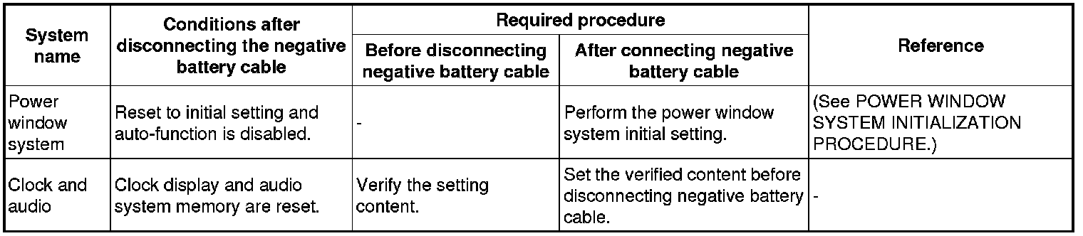 - Before removing the SRS air bag system-related parts, always disconnect the negative battery cable and wait for 1 min. or more to allow the back-up power supply to deplete its stored power. Air Bag System Service Warnings