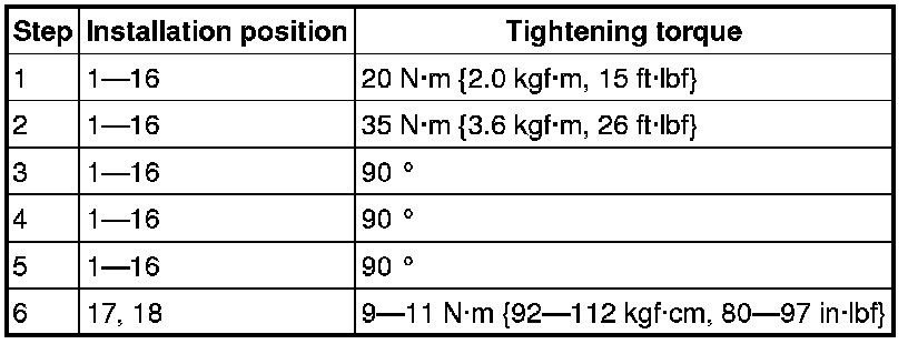 Cylinder HeadTighten the cylinder head bolts in the order in 6 steps in the order shown in the figure.