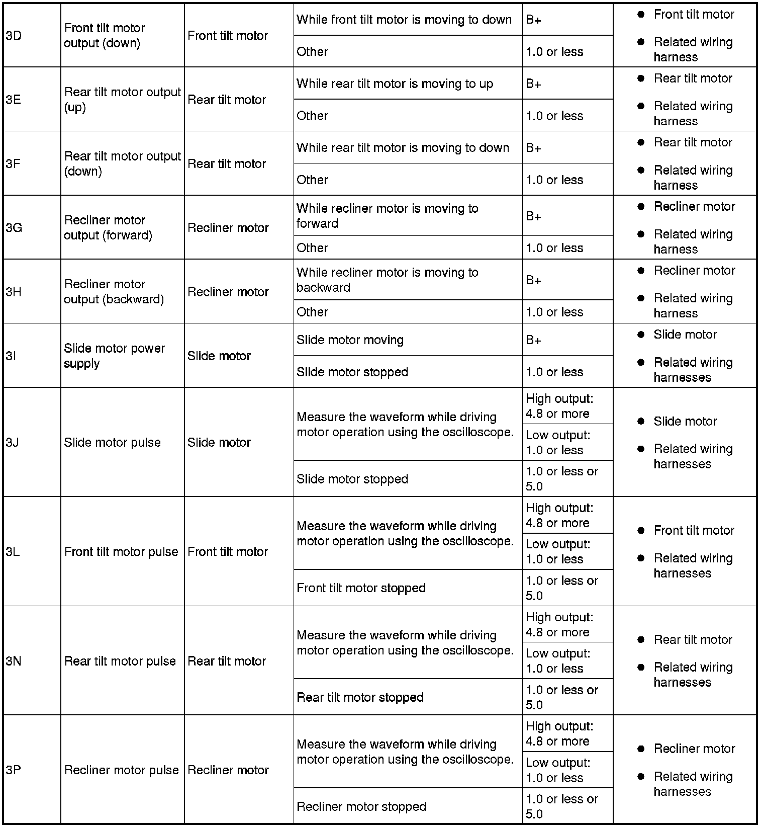 1. Measure the voltage at each terminal is as indicated in the Terminal Voltage Tables.