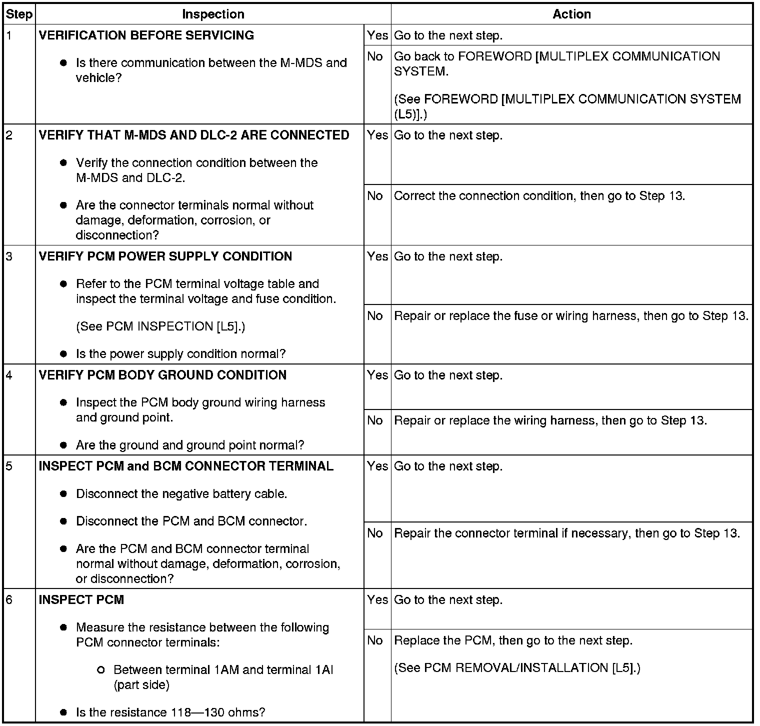 - Possible causes of communication errors between the M-MDS and vehicle include communication circuit interruption due to an open circuit in the CAN communication wiring harness, or poor contact of connector terminals, or a BUS OFF condition due to a short circuit in the CAN communication wiring harness.