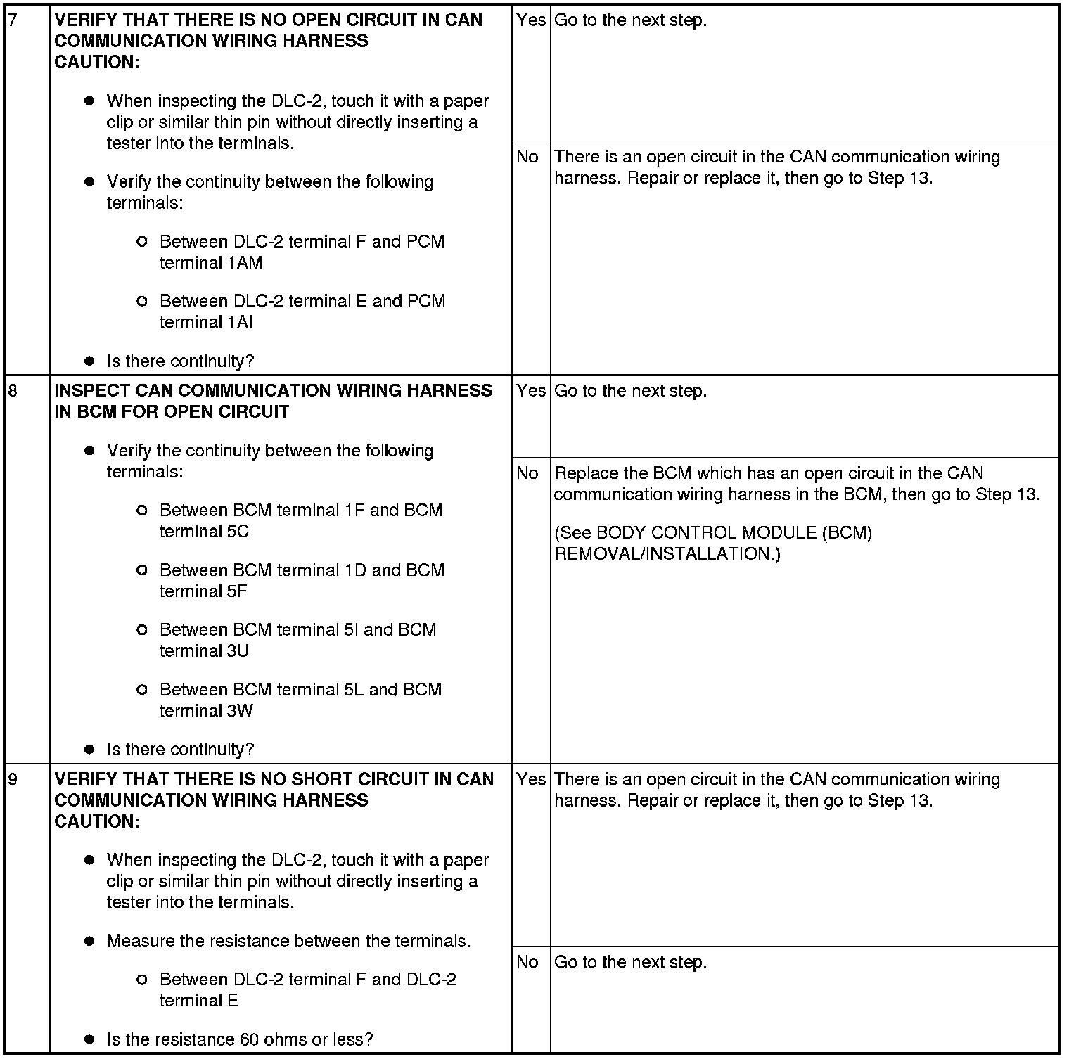 - Open circuit in BCM CAN line