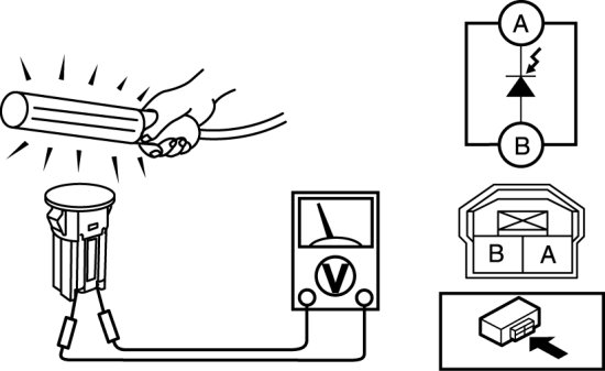 2. Connect the positive (+) lead to terminal A and the negative (-) lead to terminal B of the solar radiation sensor, and verify that the voltages are as shown in the table.