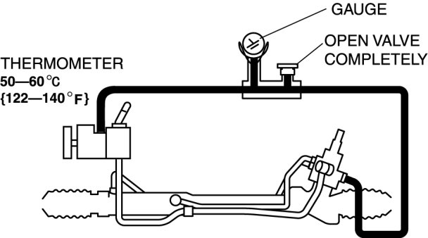 9. Turn the steering wheel fully to the left and right, then measure the fluid pressure generated at the gear housing.