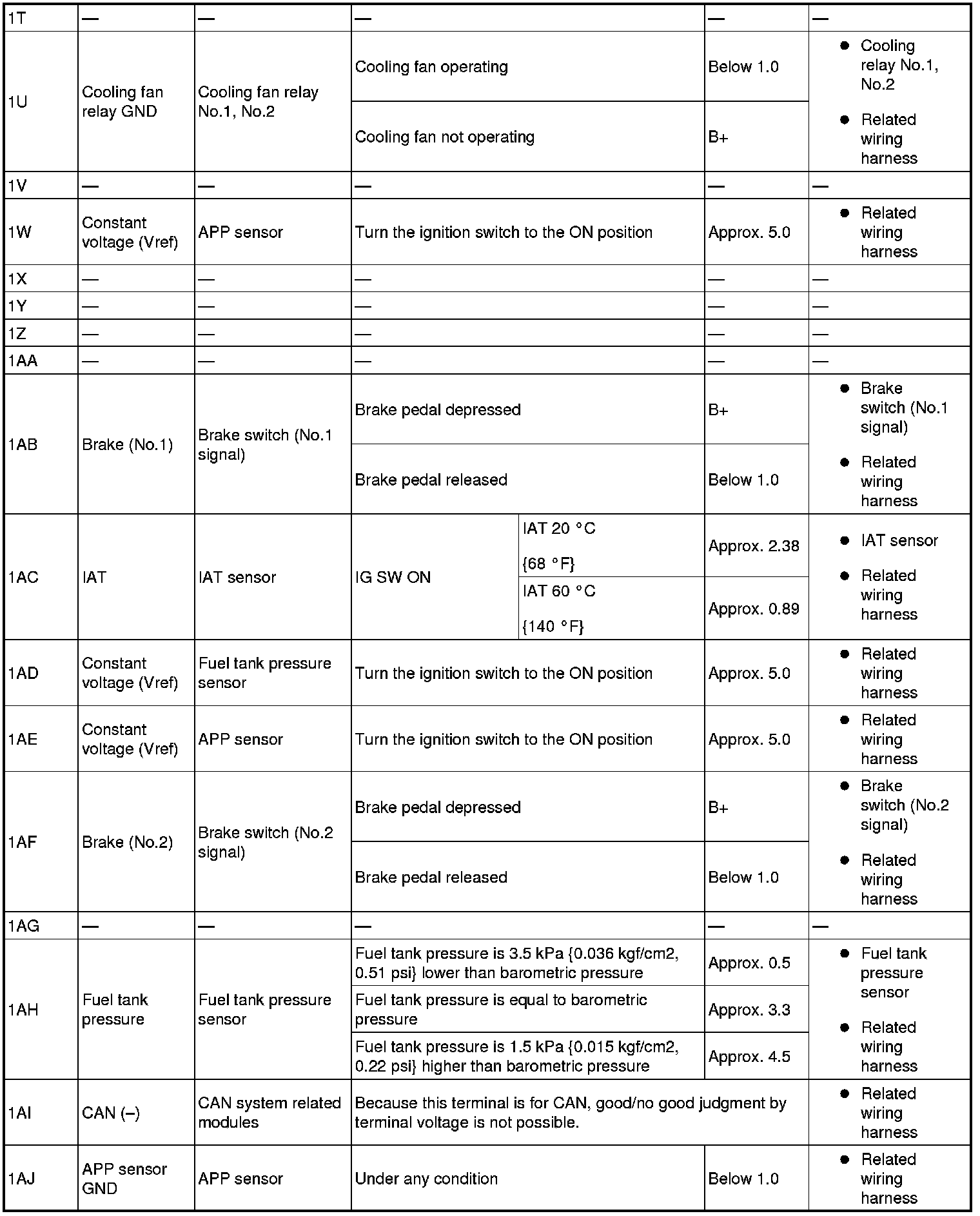 - Fuel Injection No.1: 2BB(+)-body ground(-)