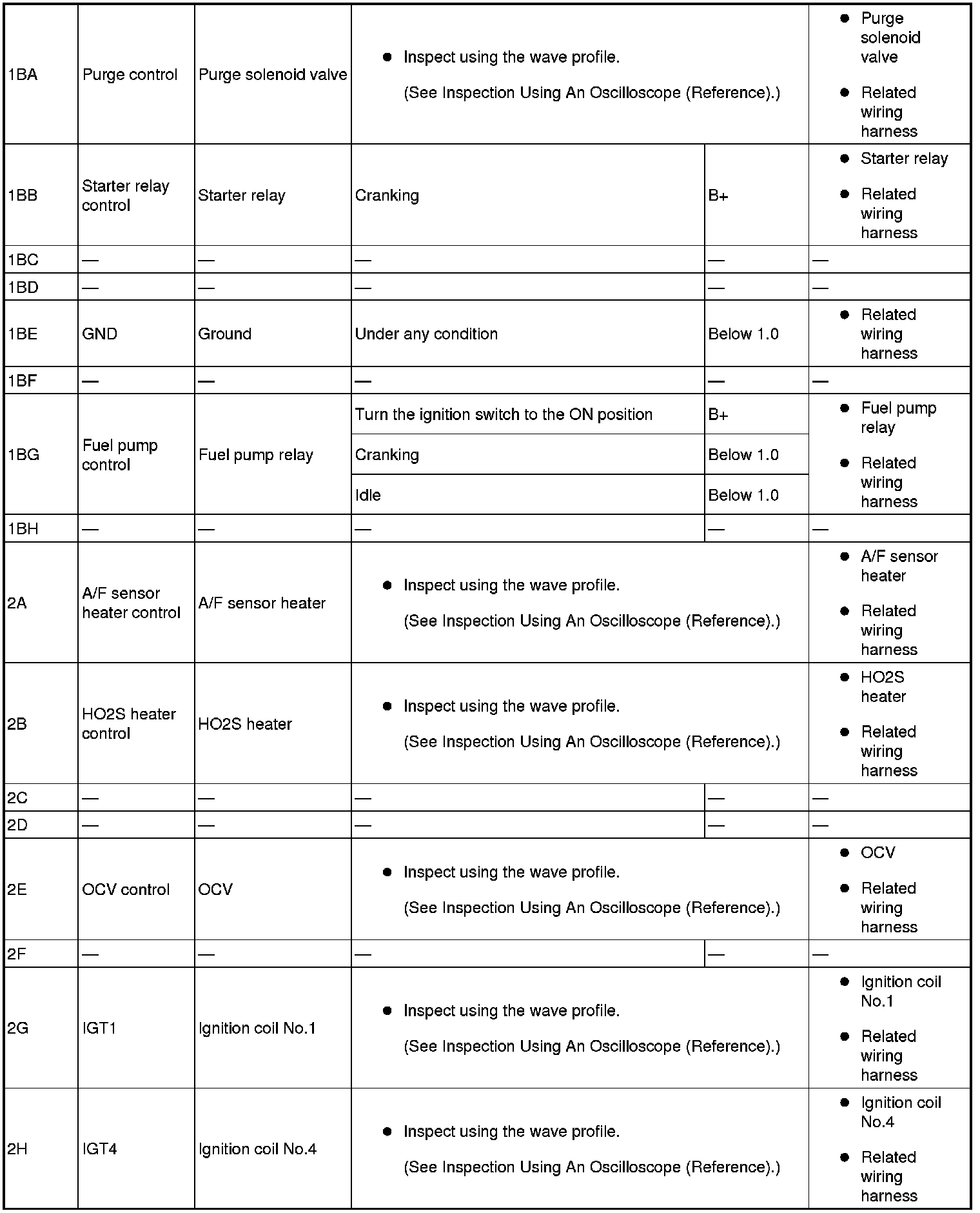 - IGT4(ignition coil No.4): 2H(+)-body ground(-)