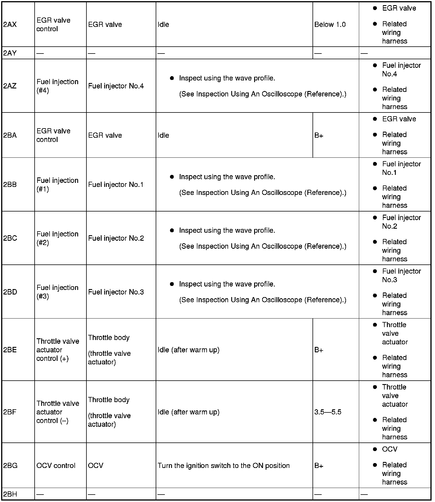 - Fuel Injection No.4: 2AZ(+)-body ground(-)