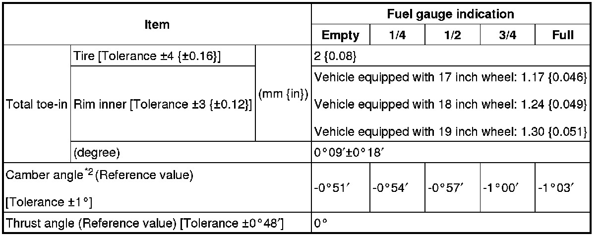 Rear wheel alignment (Unloaded)*1