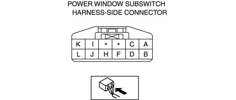 3. Inspect the power window subswitch connector for continuity at terminals H and I.