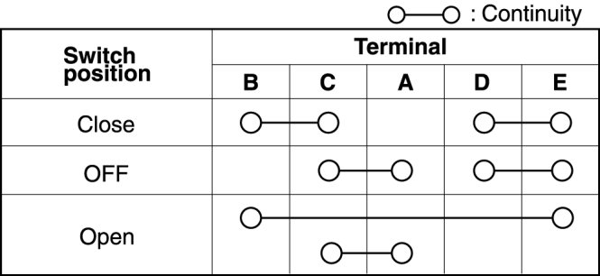 5. Inspect for continuity between the power window subswitch terminals.