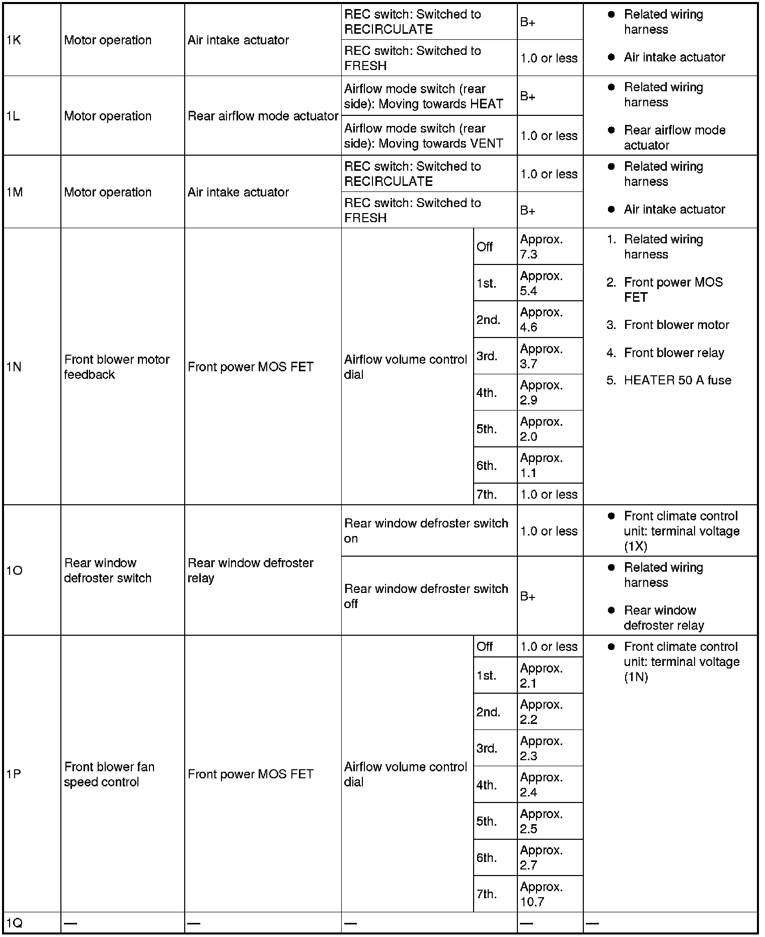 - If the parts under "Inspection item (s)" are found to be normal, replace the front climate control unit.