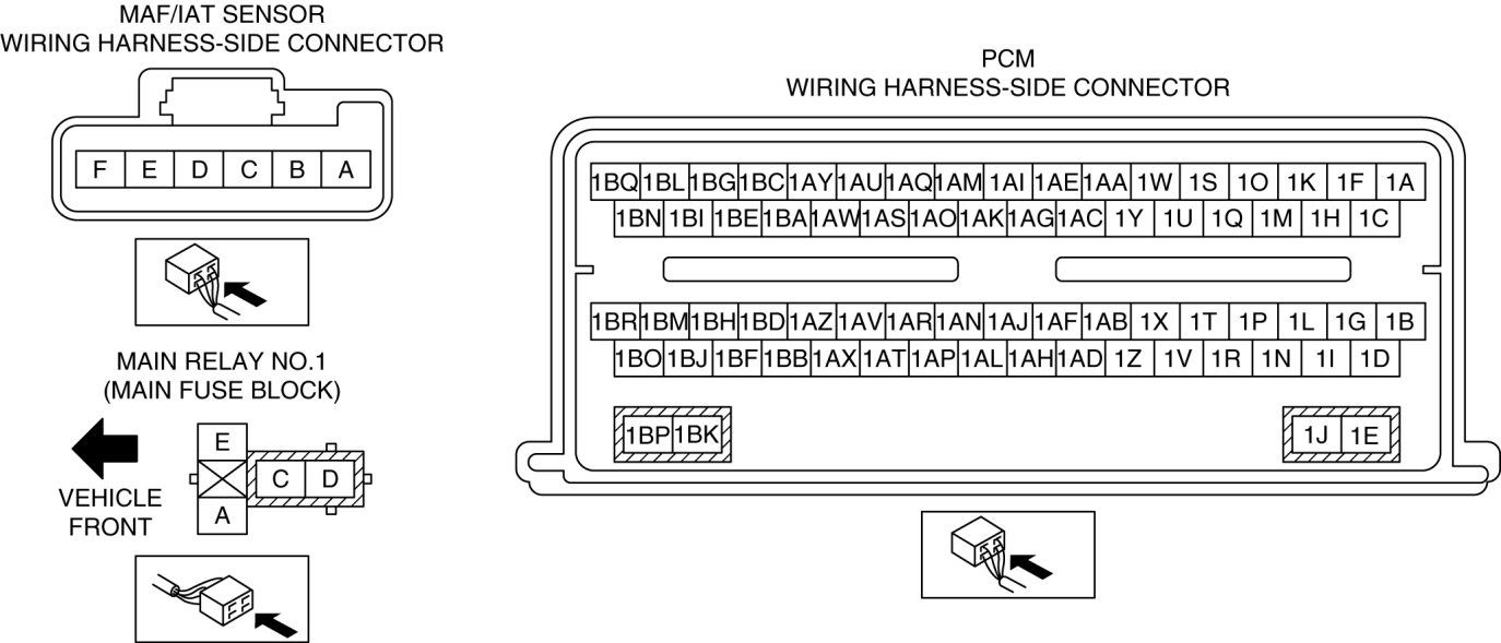 - MAF/IAT sensor terminal A and main relay No.1 terminal D