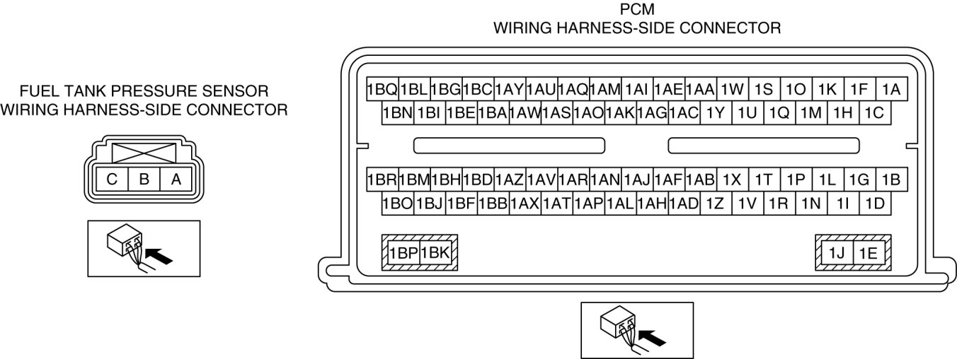 - Fuel tank pressure sensor terminal C and PCM terminal 1I