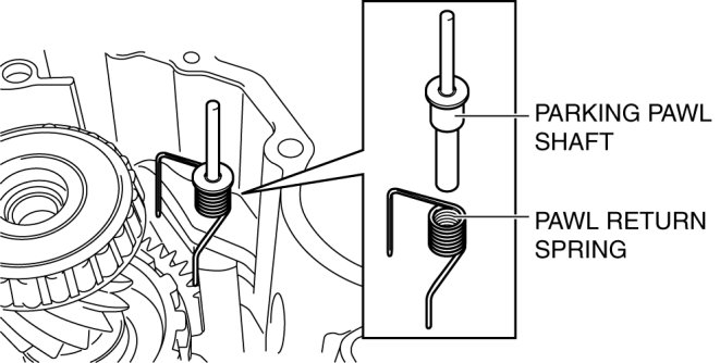 33. Remove the pawl return spring and the parking pawl shaft.