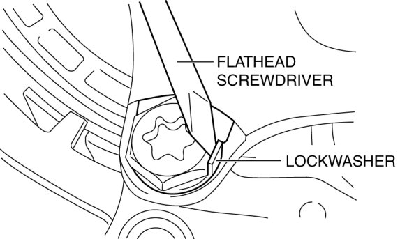 45. Using a flathead screwdriver and a hammer, pry back the crimp on the lockwashers.