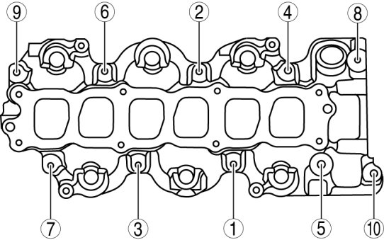 Intake ManifoldTighten the intake manifold installation bolts in the order shown.