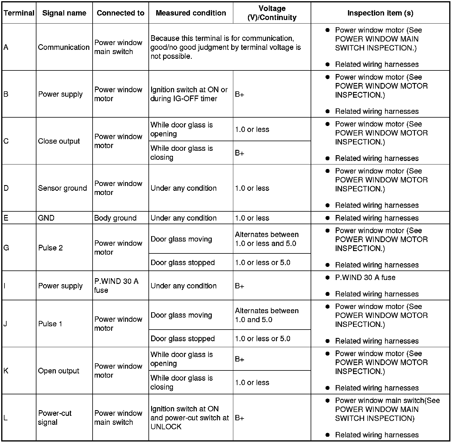 1. Inspect for continuity between the power window subswitch terminals.