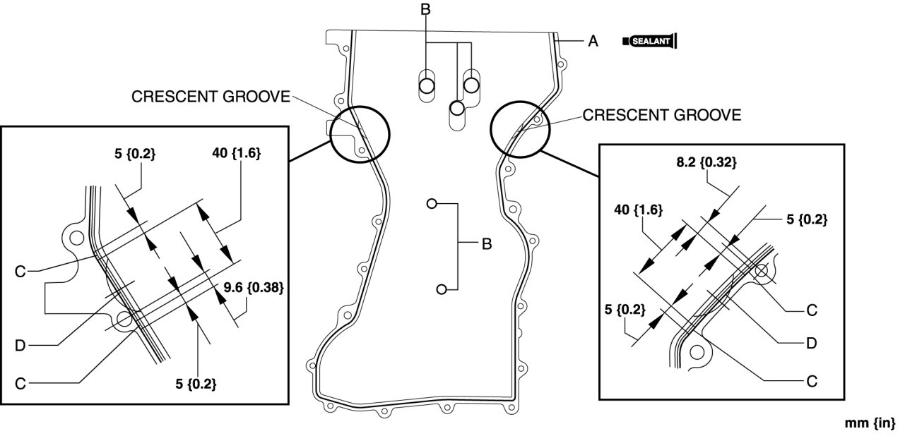 Engine Front CoverInstall the engine front cover before the applied silicone sealant starts to harden.