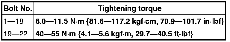 Install the engine front cover bolts in the order as shown.