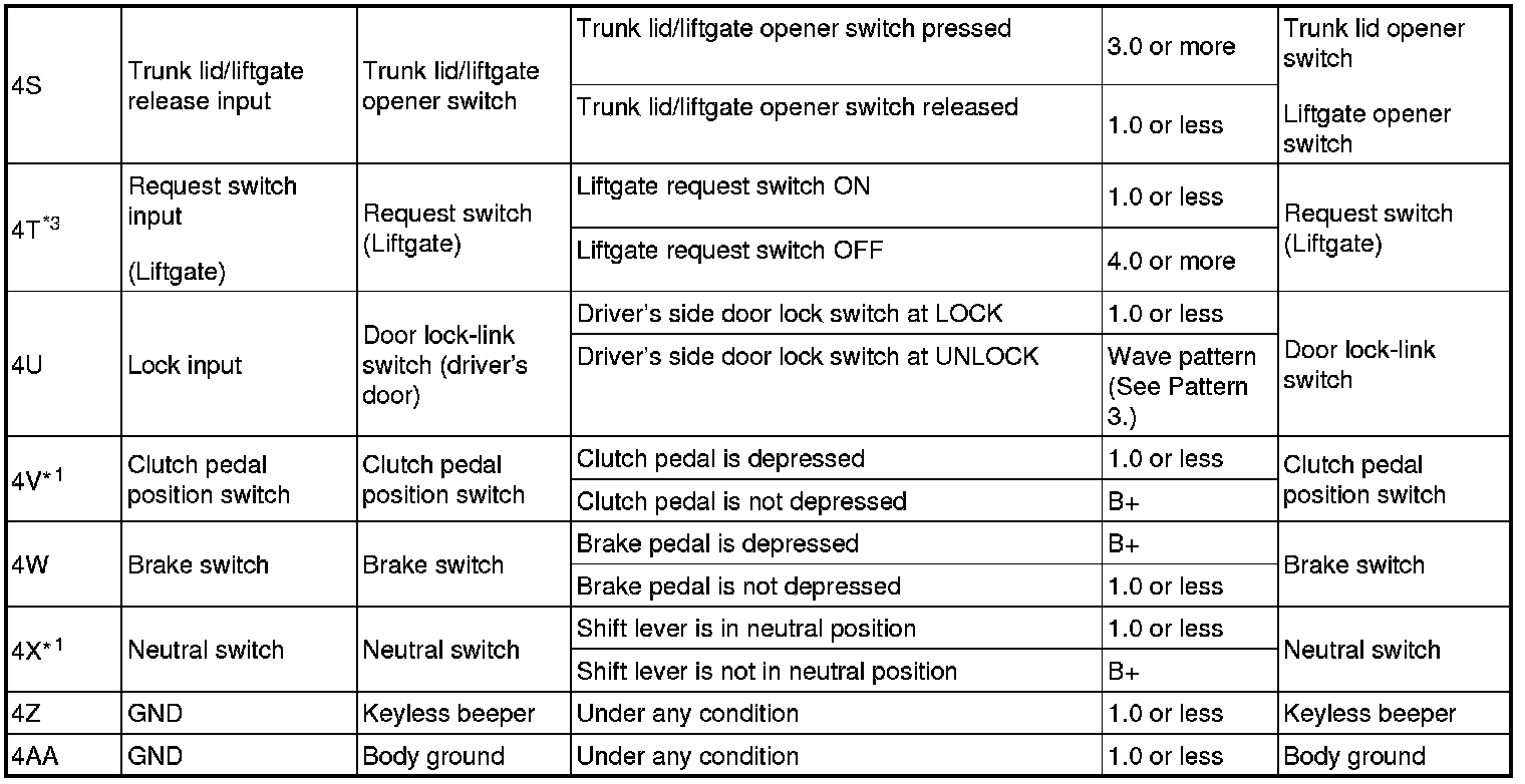- Door lock-link switch (driver's door): 4U (+) -> body ground (-)