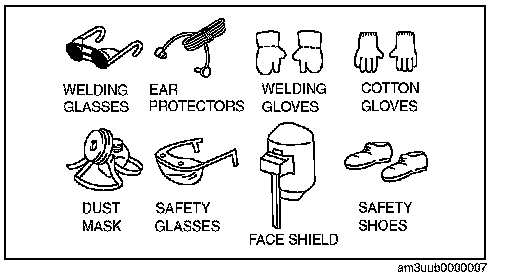 - Protective head covering and safety shoes should always be worn. Depending upon the nature of the work, gloves, safety glasses, ear protectors, face shield, etc., should also be used.