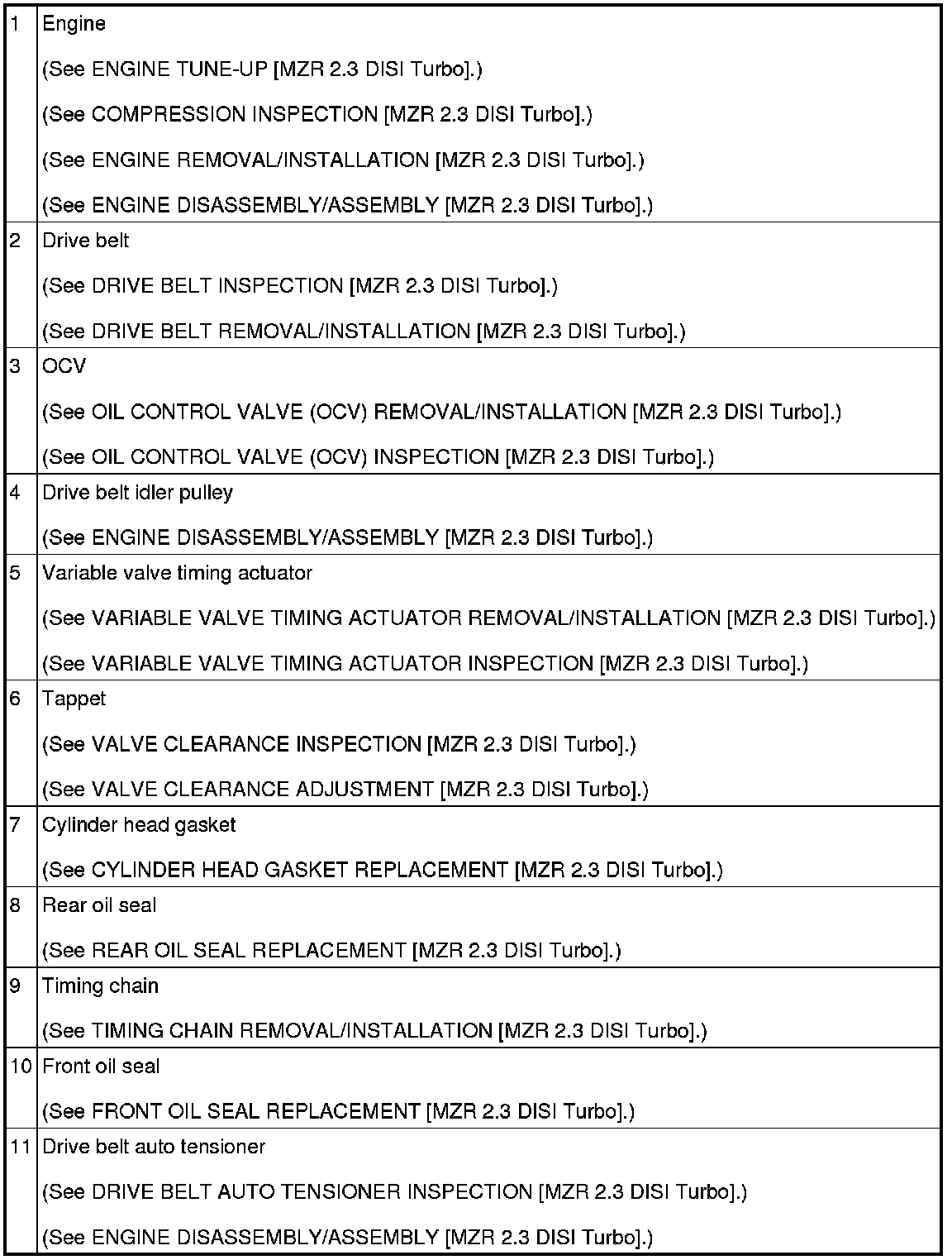 ENGINE LOCATION INDEX [MZR 2.3 DISI Turbo]