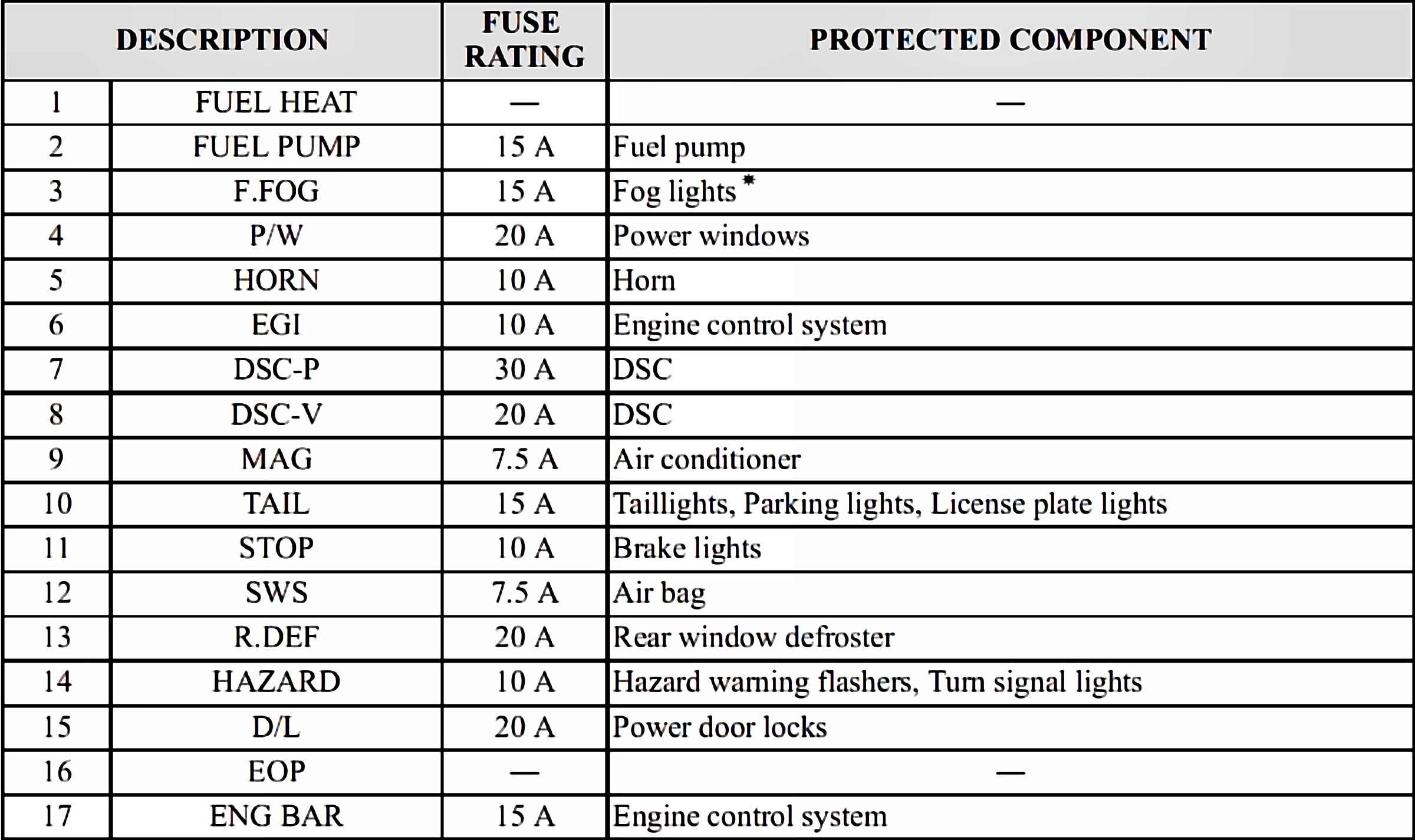 Fuses 1-17: