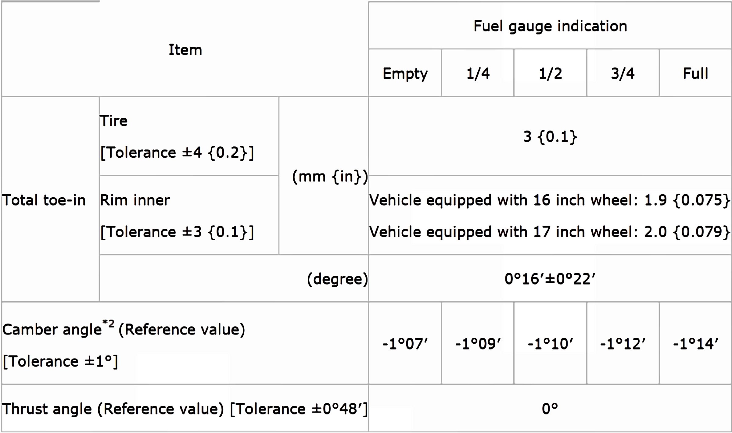 Wheel Alignment Specifications (Unloaded)*1