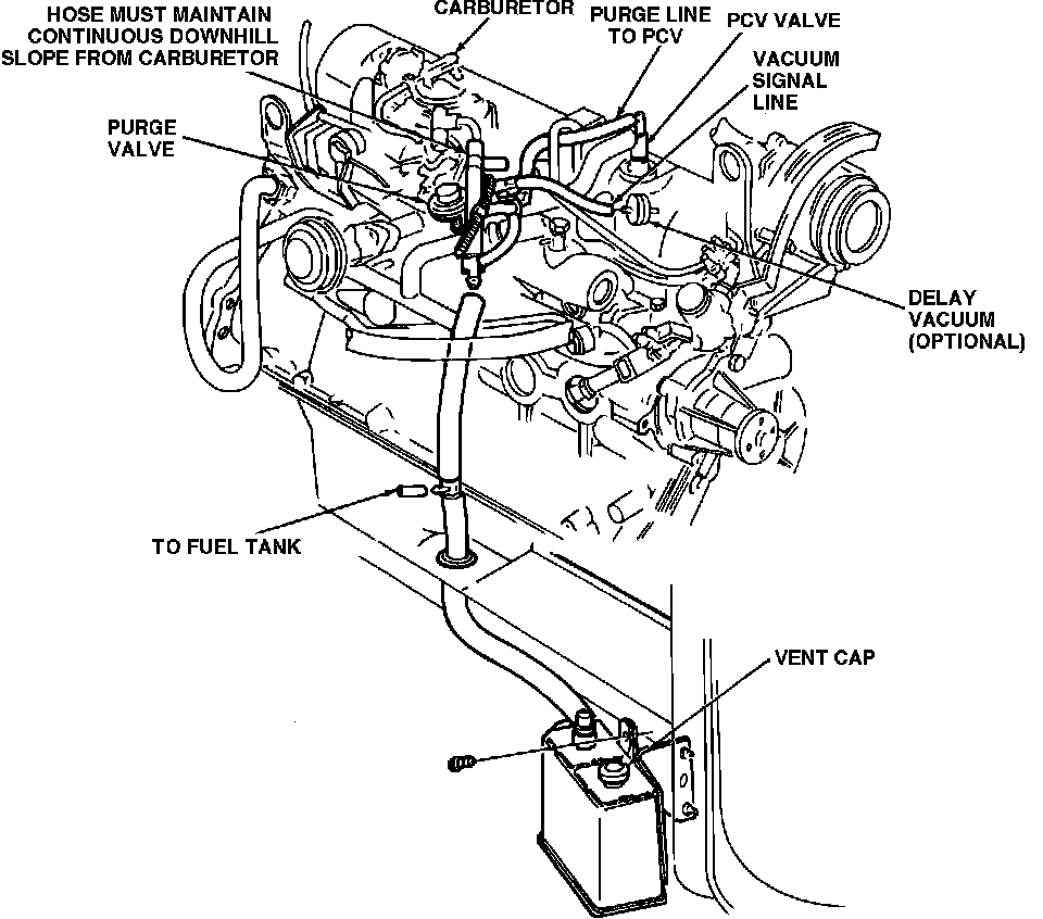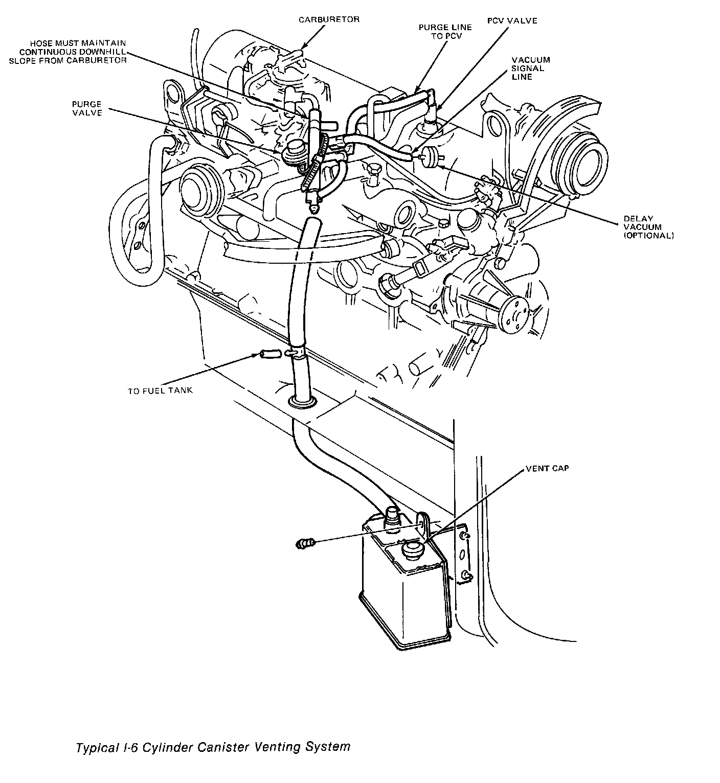 Fig. 2 Evaporative emission control system. 1982-83 models W/6 cyl. engine: