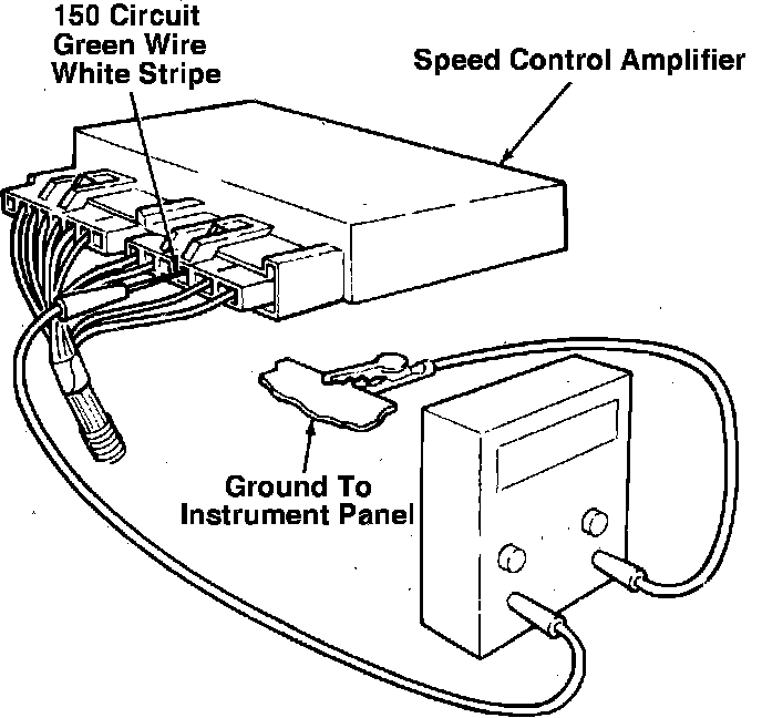5. Check circuit 150 (DG/W) from speed control amplifier to speedometer for shorts to ground or battery.
