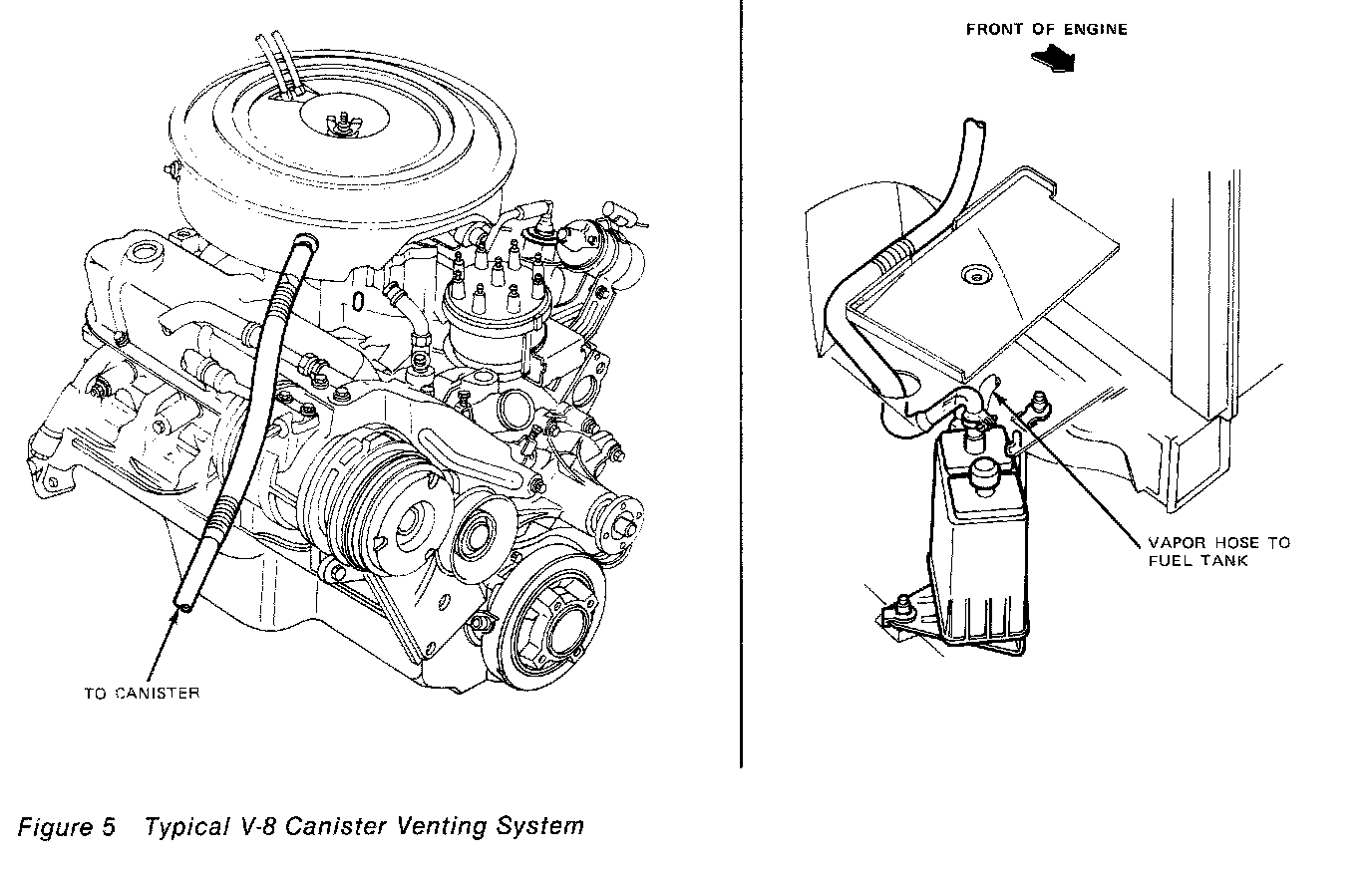 Fig. 3 Evaporative emission controls system. 1982 models W/V6 & V8 engines:
