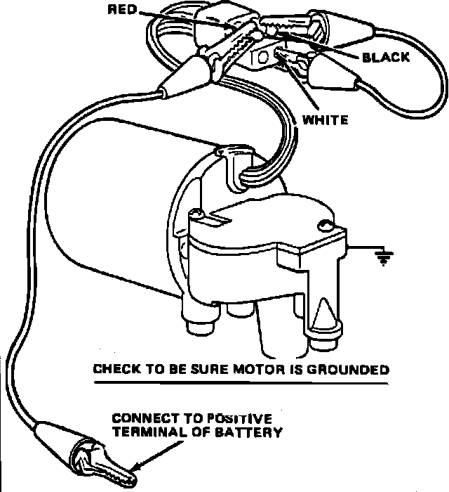 3. Connect battery voltage to red wire terminal using a suitable jumper wire, and ensure motor is properly grounded.