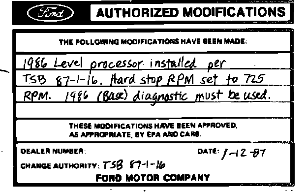 Obtain an Authorized Modifications Decal and list the date, dealer number, and summary of alterations performed. Select a prominent place adjacent to the Vehicle Emission Control Information Decal suitable for installing the Authorized Modifications Decal. Clean the area, install the decal, and coyer it with a clear plastic decal shield.